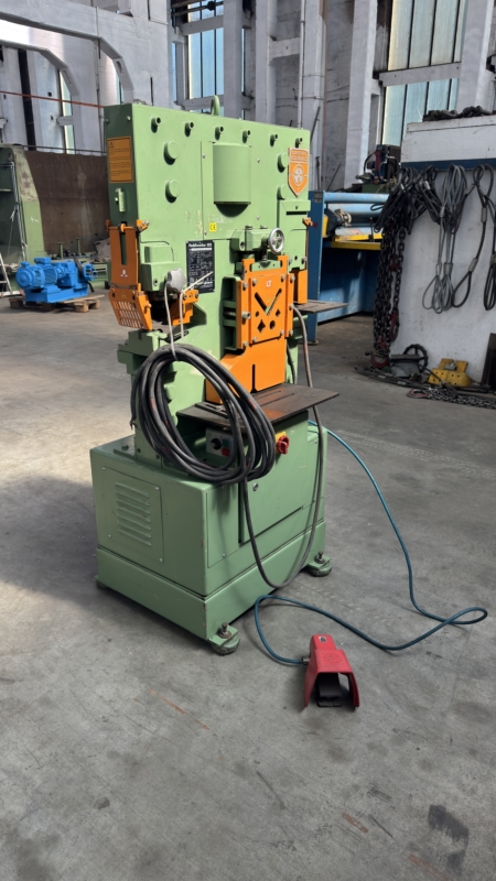 Peddiworker Hydraulic 502 Schere gebraucht – Die Peddiworker Hydraulic 502 ist eine präzise hydraulische Schere, die für die Verarbeitung von Profil- und Stabstahl konzipiert wurde. Mit einem Arbeitsdruck von 250 bar und einer Presskraft von 50 t eignet sich diese Maschine besonders für Anwendungen in der Lohnfertigung und im Maschinenbau. Das Maschinengewicht von ca. 0,9 t ermöglicht eine robuste Anwendung auch in industriellen Umgebungen. Diese Schere aus dem Jahr 1997 bietet durch ihre technischen Merkmale eine effektive Lösung für das Schneiden von Stahlprofilen. Aufgrund ihrer Vielseitigkeit ist sie sowohl für kleinere Betriebe als auch für große Produktionsstätten von Interesse. Alle Angaben ohne Gewähr.